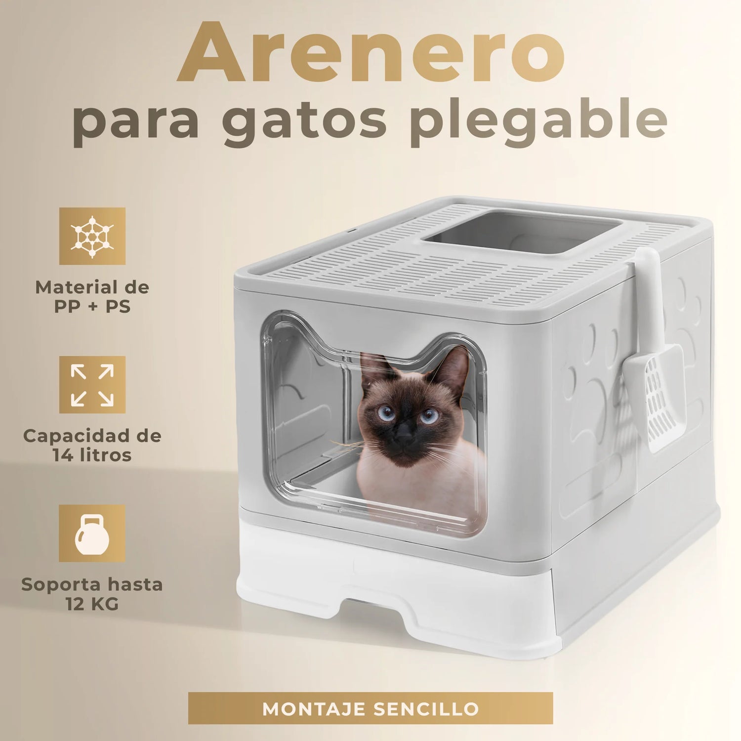 Gracias a su bandeja extraíble en forma de cajón y la cuchara incluida, la limpieza es muy sencilla: simplemente retira la bandeja, desecha la arena usada y limpia con agua y jabón neutro. Se aconseja cambiar toda la arena cada 1–2 semanas, según el uso y la cantidad de gatos.