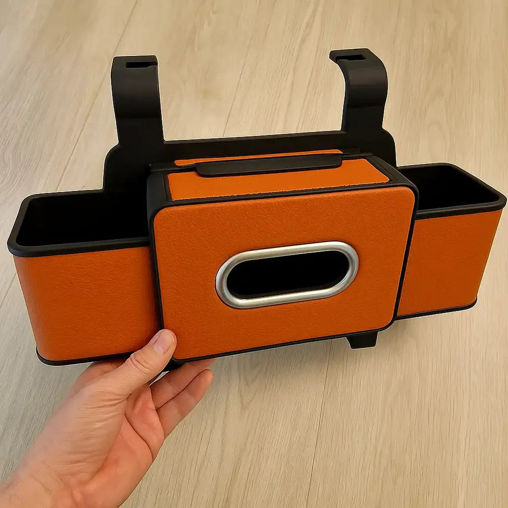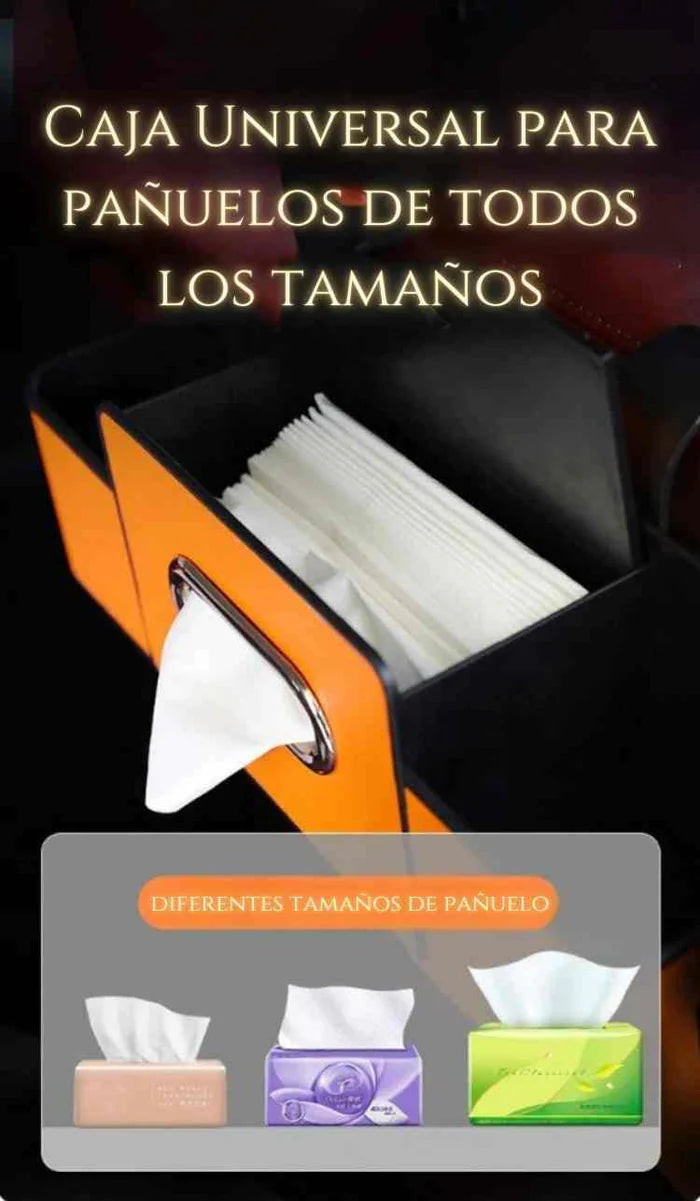 - Solución integral: Combina caja de pañuelos, soporte de almacenamiento y ganchos en un diseño compacto.