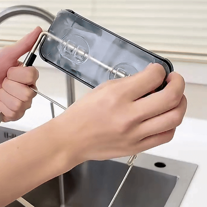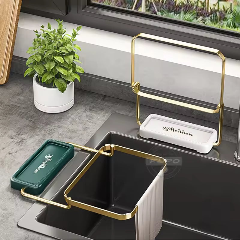 Cuando no se usa, el soporte se puede plegar para ahorrar espacio en el fregadero sin afectar su uso. También puede colgar un paño de cocina para escurrir después de colocar el soporte.