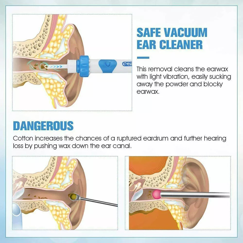 A diferencia de los hisopos de algodón que penetran más profundamente la cera, EarSavvy™ la elimina suavemente, sin molestias ni suciedad. Su diseño ergonómico a pilas garantiza un uso sencillo para todas las edades, manteniendo los oídos limpios y sanos con facilidad.